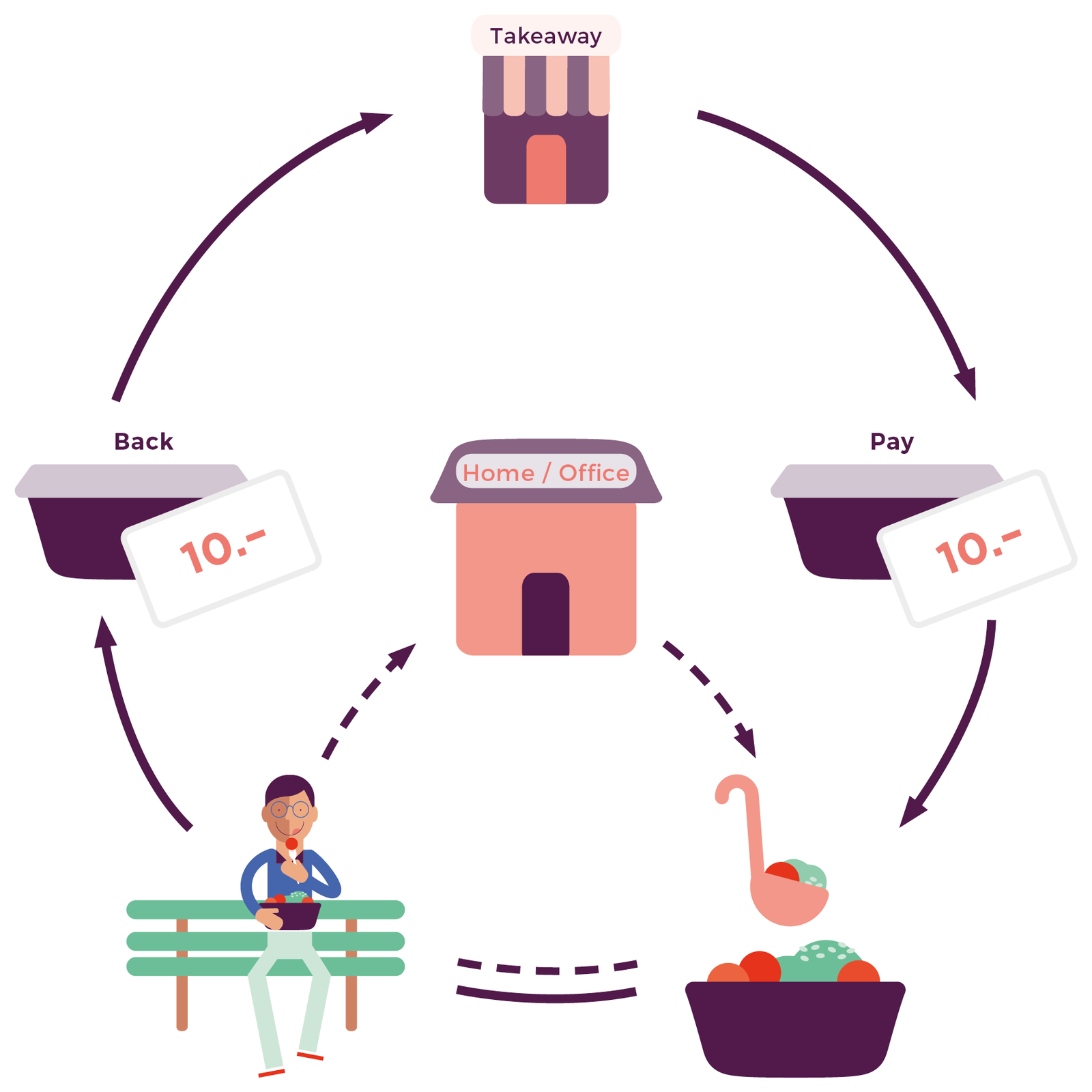 Customers pay CHF 10 for the reCIRCLE BOX, can keep it as long as they want or return it to any partner. -> Find out how reCIRCLE works for customers.